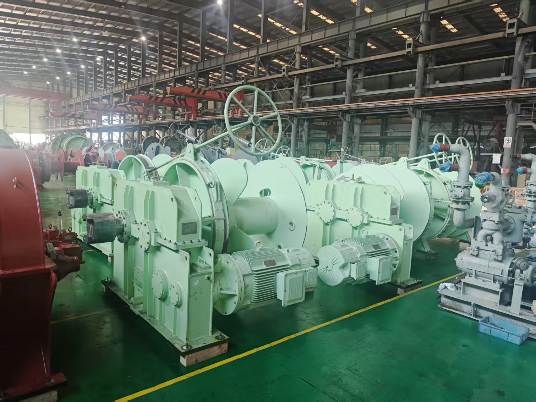 近日,隨著中船集團(tuán)武漢船機(jī)自主研制的為3000TEU集裝箱船配套的最后一批次電動(dòng)變頻錨絞機(jī)順利通過(guò)NK船級(jí)社檢驗(yàn),標(biāo)志著該型電動(dòng)錨絞機(jī)生產(chǎn)研制各環(huán)節(jié)得到充分驗(yàn)證,彰顯了公司在高端船舶船用設(shè)備領(lǐng)域的技術(shù)實(shí)力。